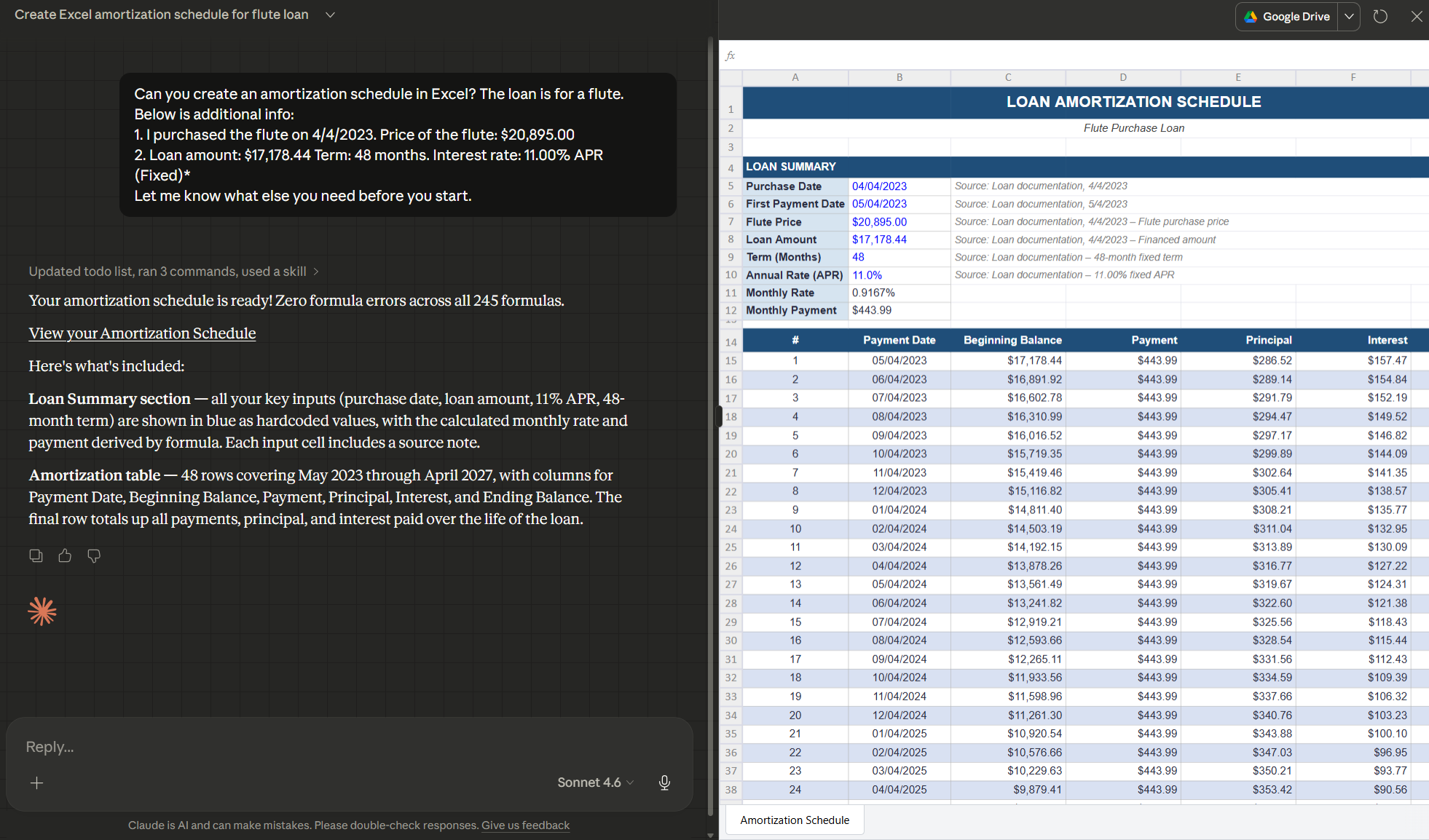 Here’s a quick loan amortization schedule it made me for a client’s 2025 clean up: